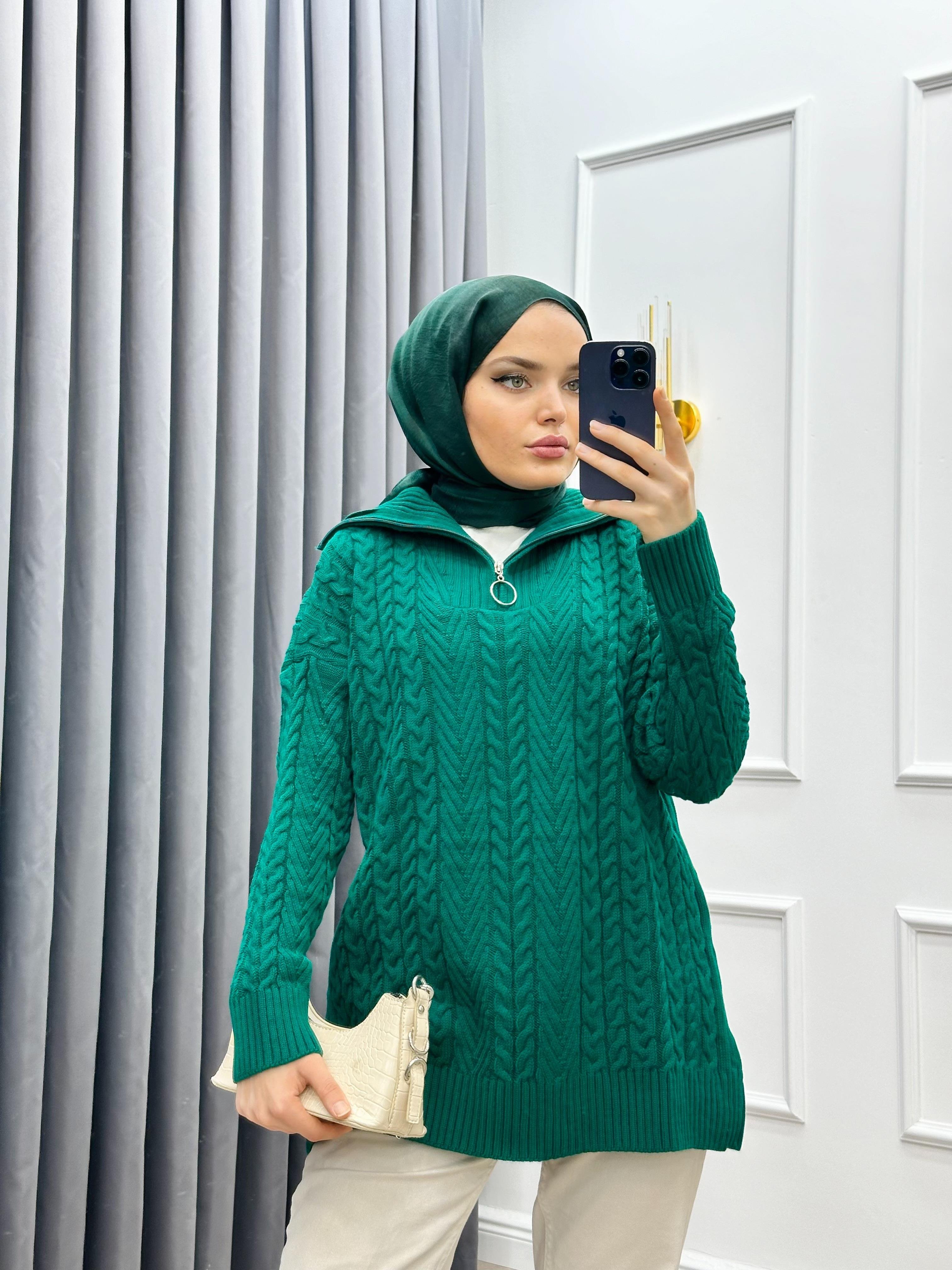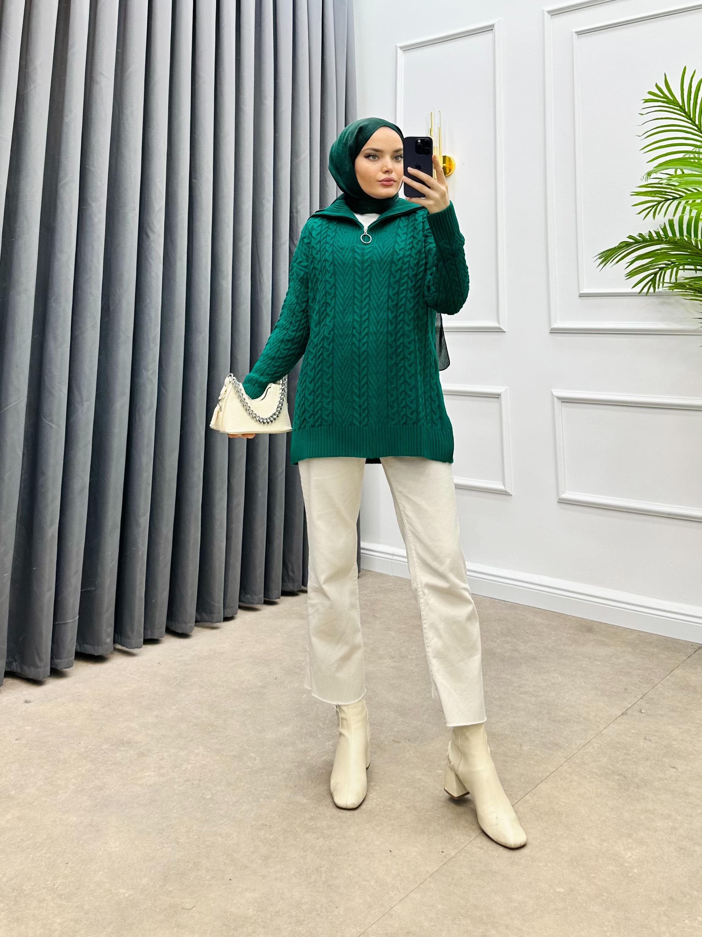 YARIM FERMUARLI TRİKO KAZAK ZÜMRÜT