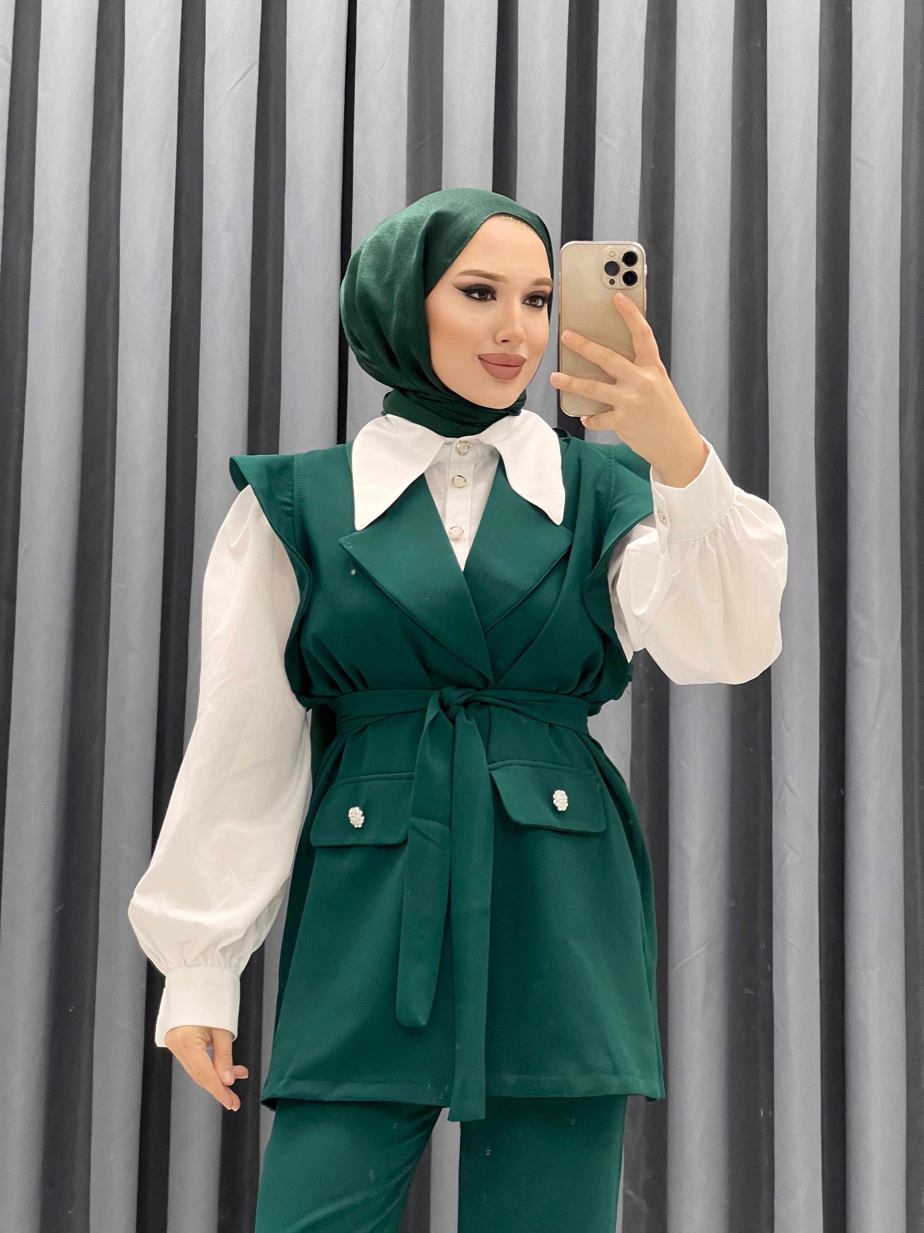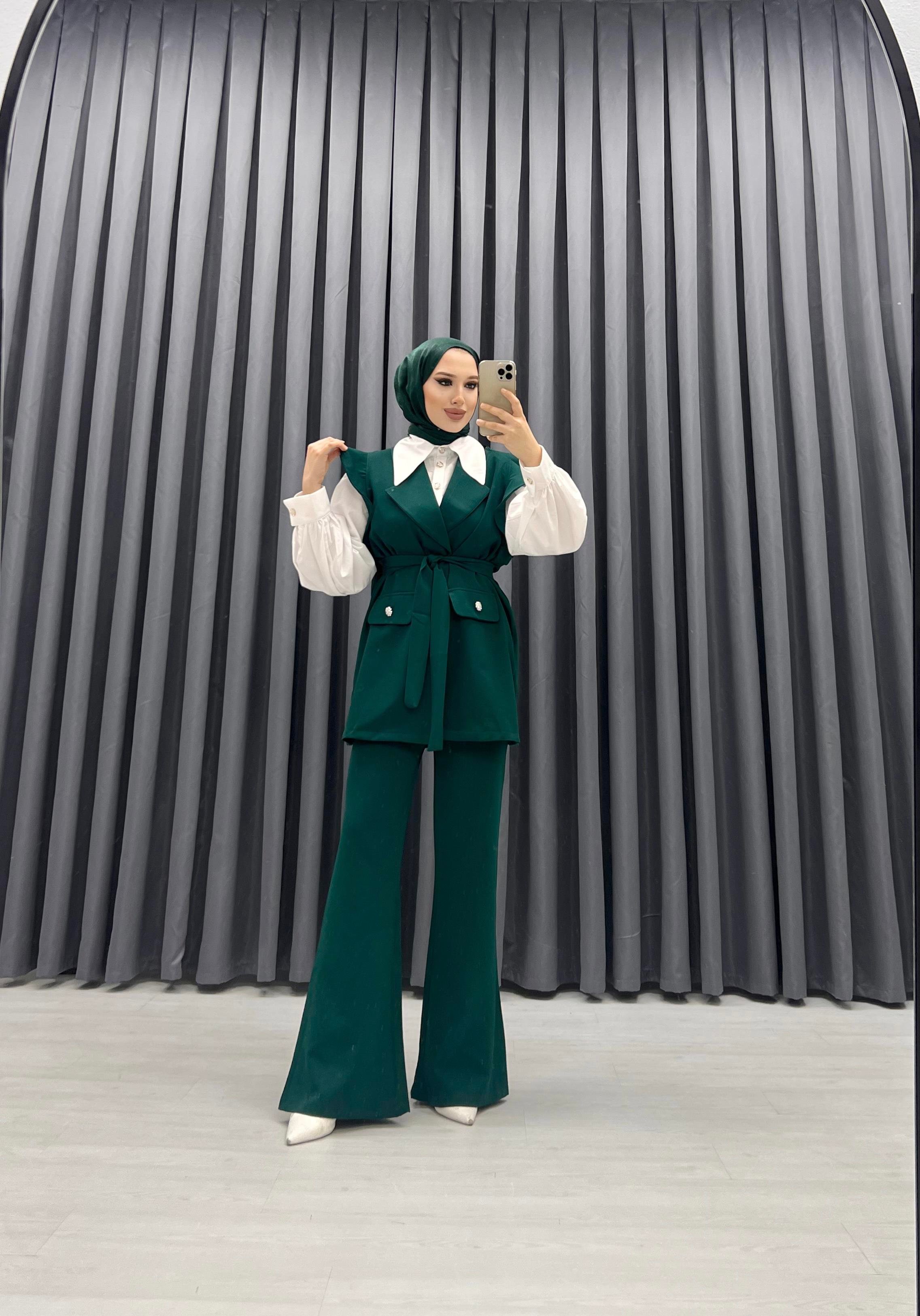 YELEKLİ PANTOLONLU TAKIM ZÜMRÜT
