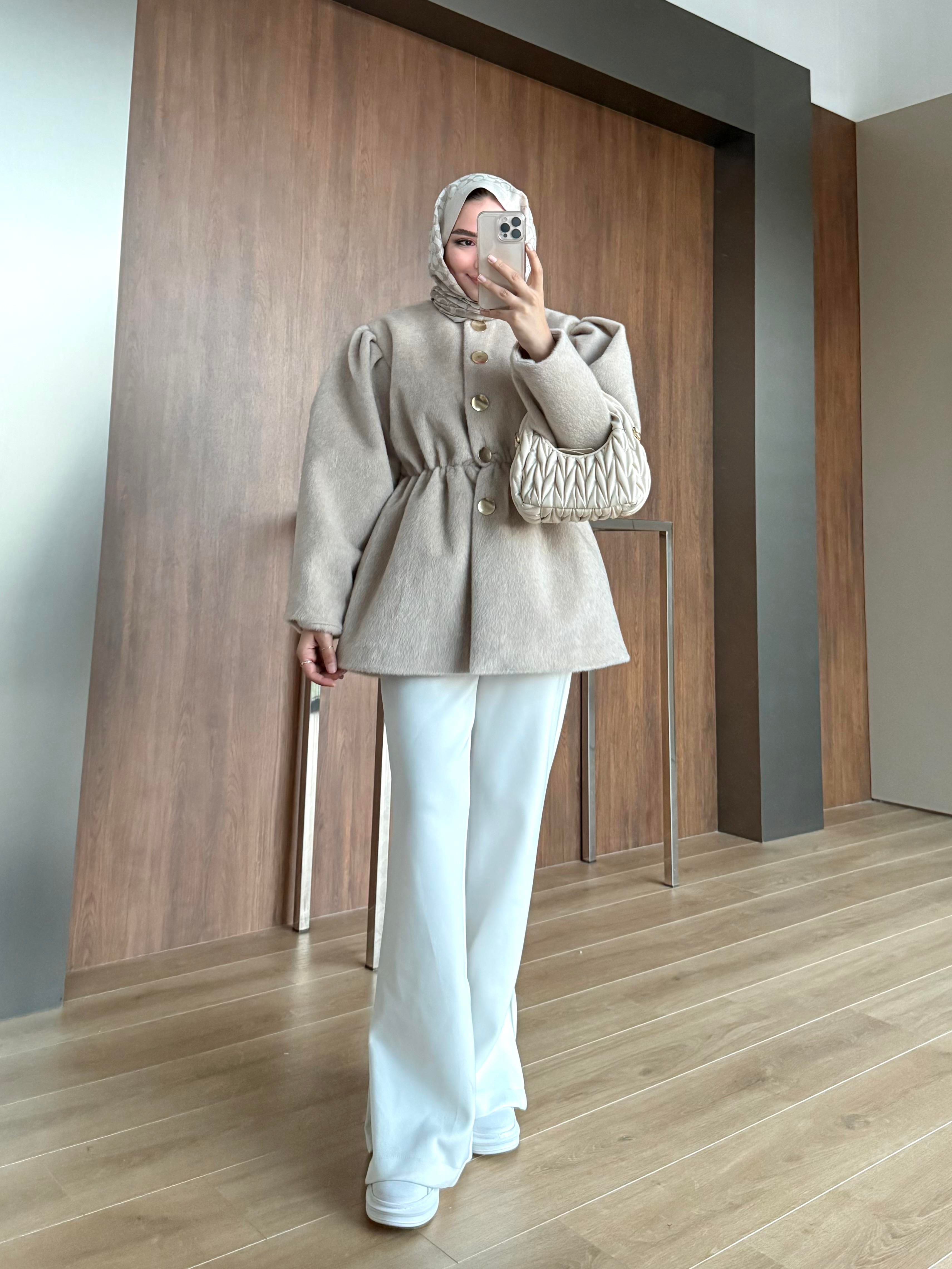 GOLD DÜĞMELİ BELİ LASTİKLİ CEKET BEJ
