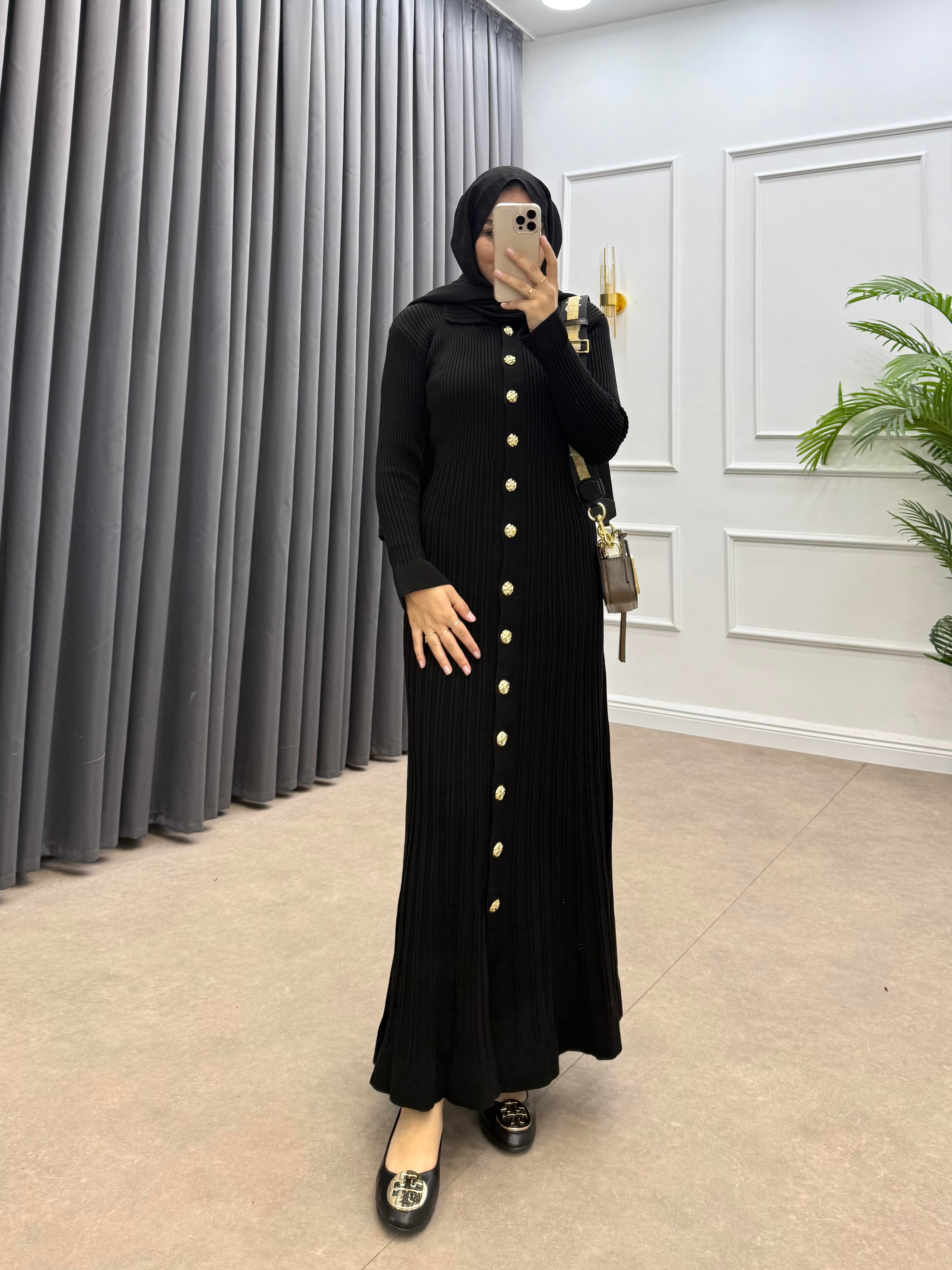 GOLD DÜĞMELİ TRİKO ELBİSE SİYAH