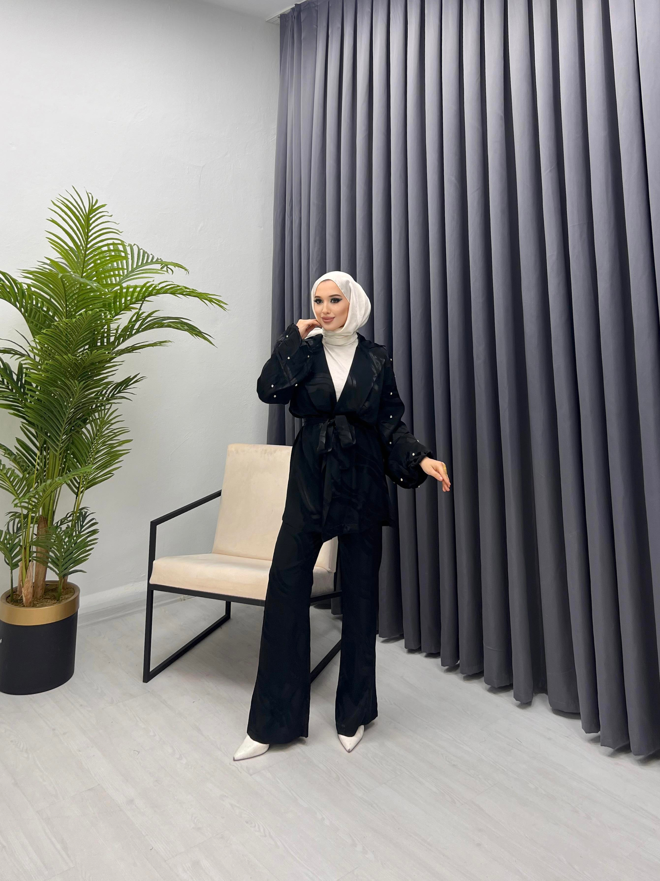 KOLU SERPME TAŞLI TAKIM SİYAH