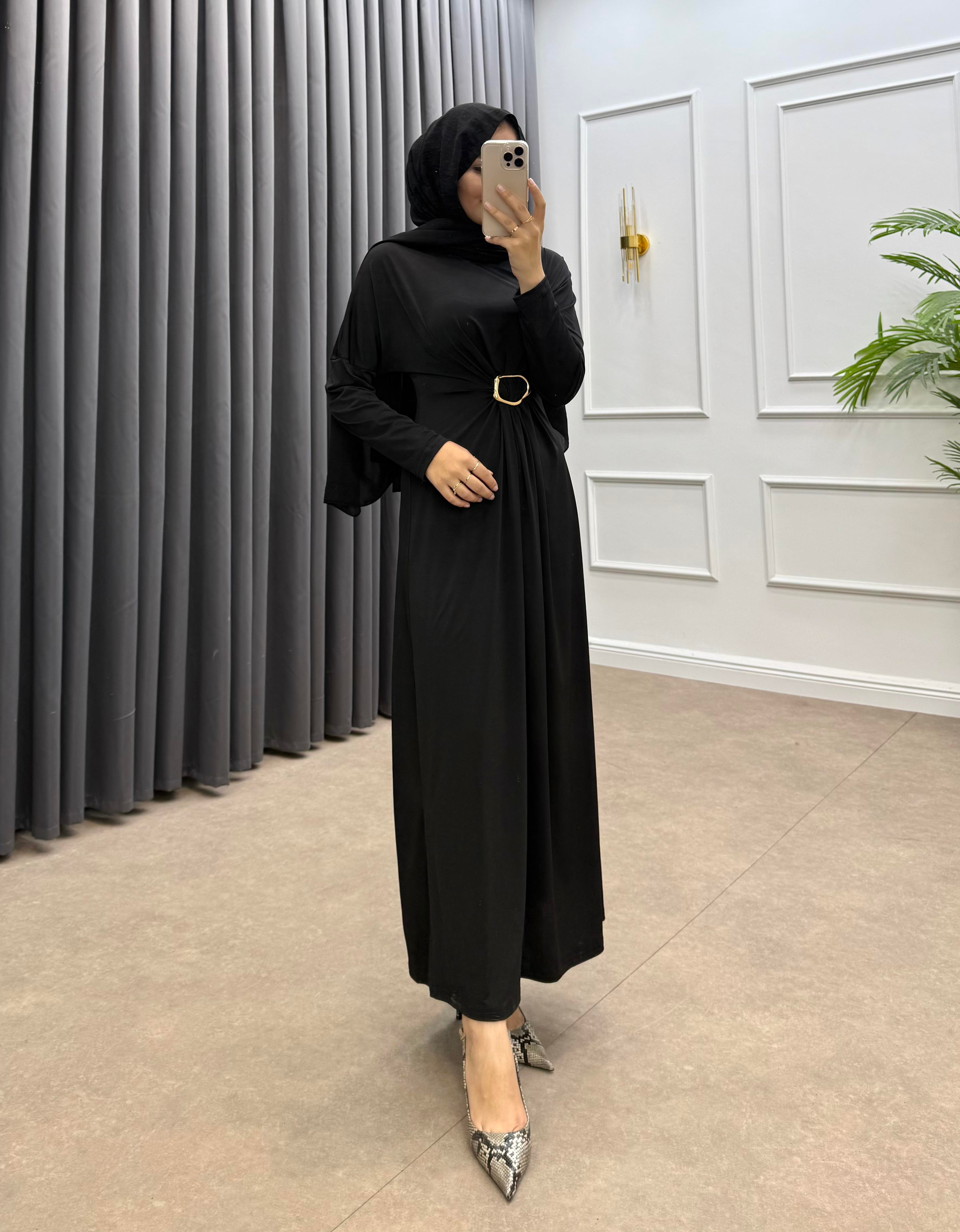 ÖN TOKA DETAYLI SANDY ELBİSE SİYAH