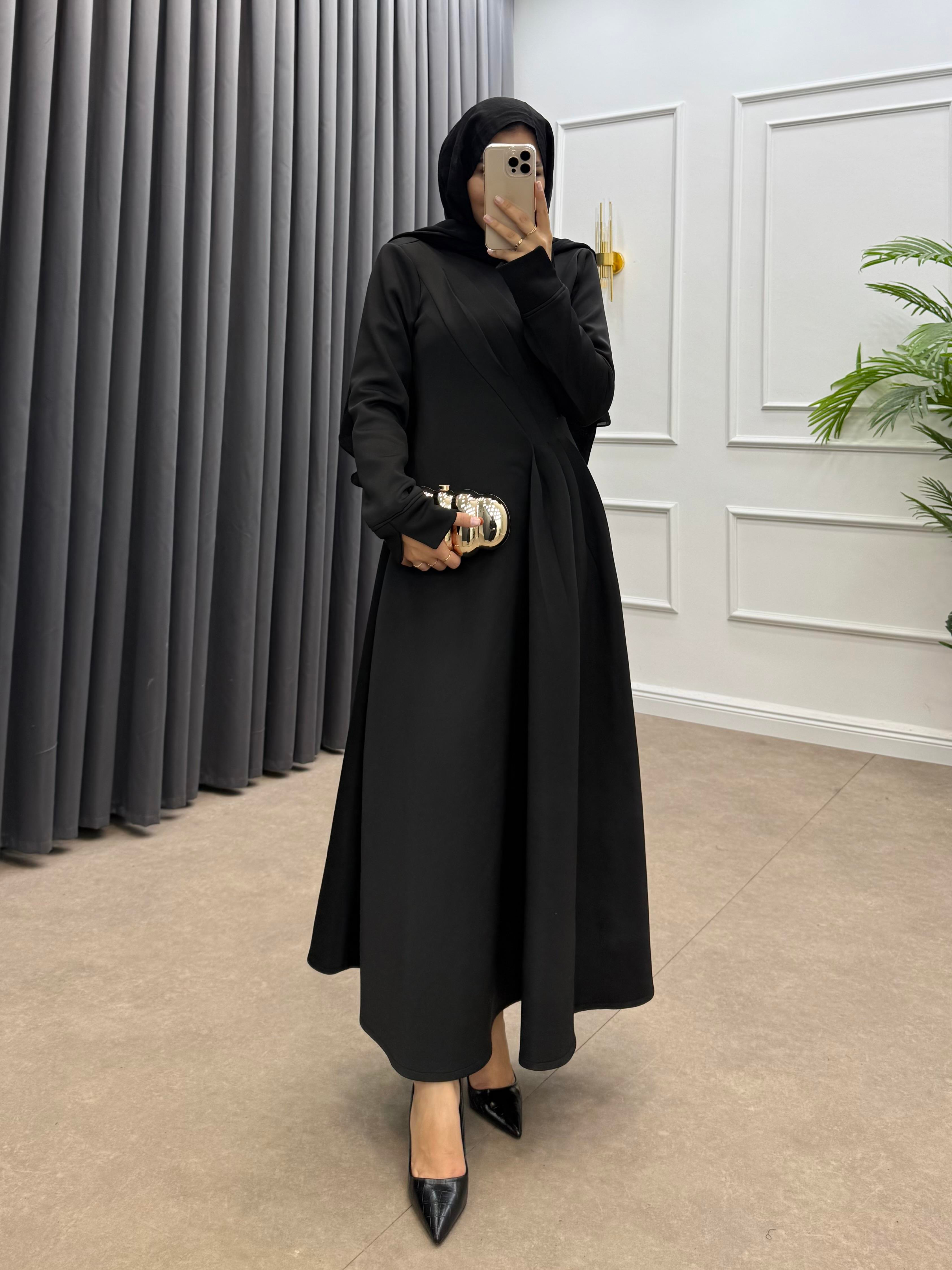 ÖNDEN PİLELİ SCUBA ELBİSE SİYAH