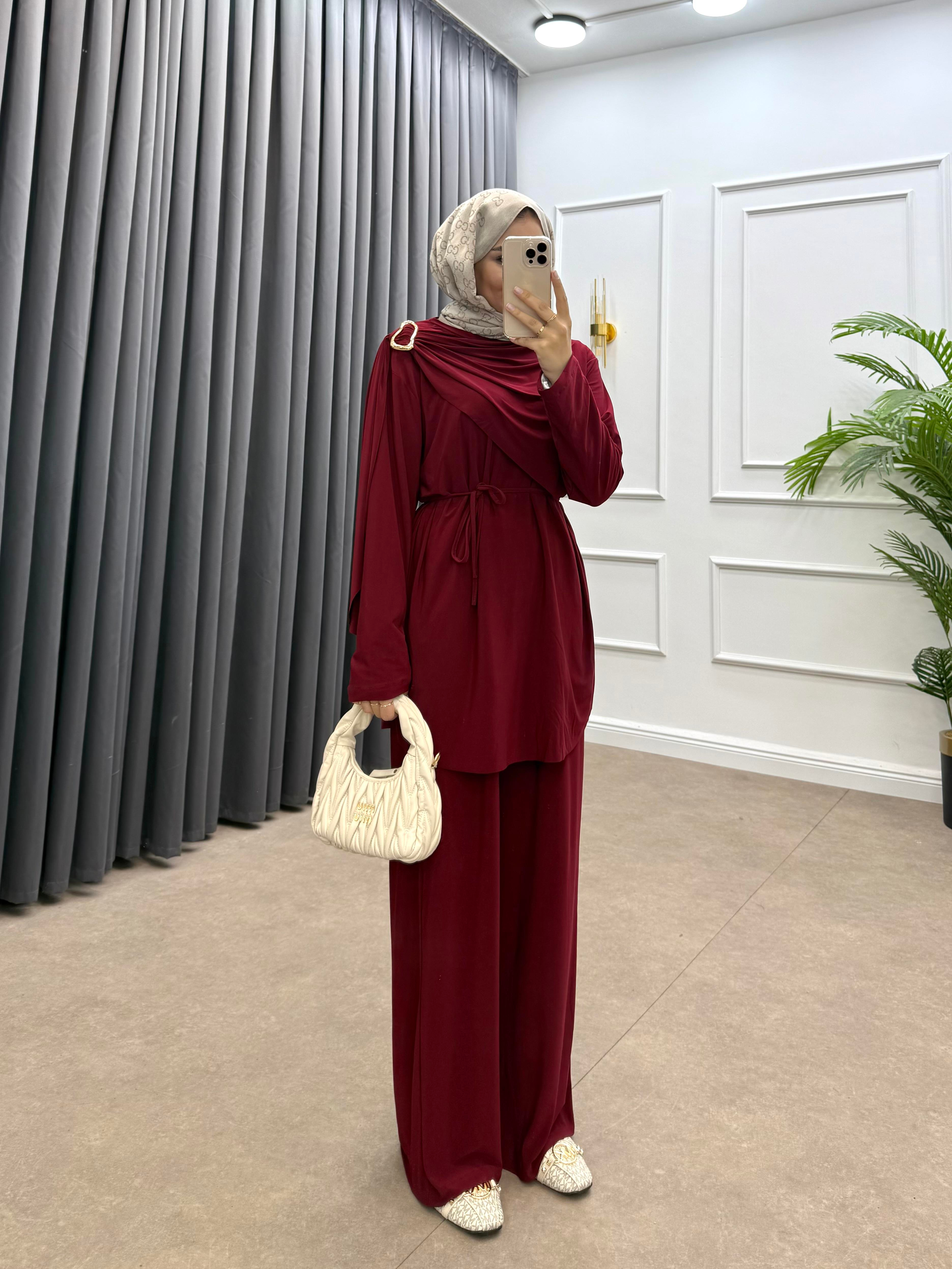 Detaylar: İkili takımdan oluşmaktadır: üst ve pantolon. Üst formu fermuarlıdır, bir adet yer kuşağı mevcuttur. Pantolon beli lastiklidir ve cep detayı bulunur. Rahat, nefes alabilen pamuklu kumaş ile gün boyu konfor sağlar. Hem günlük hem de özel kombinlerde şık bir tercih sunar. BEDEN SEÇENEKLERİ 1 (36-38) / 2 (40-42) MANKEN BİLGİLERİ Boy: 165 cm | Kilo: 52 kg | Üzerindeki beden: 1
