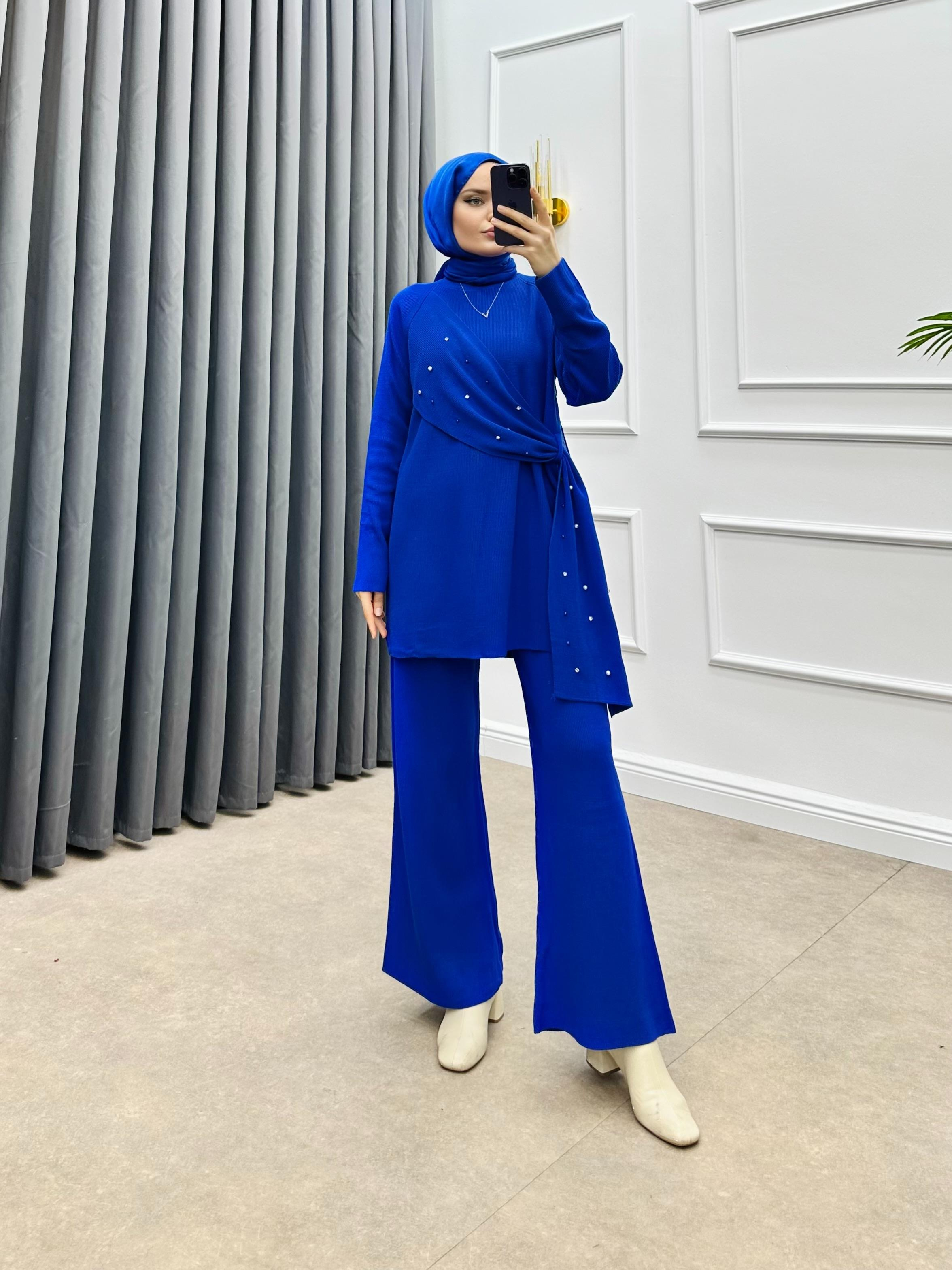 ŞAL DETAY TAŞLI TRİKO TAKIM SAKS