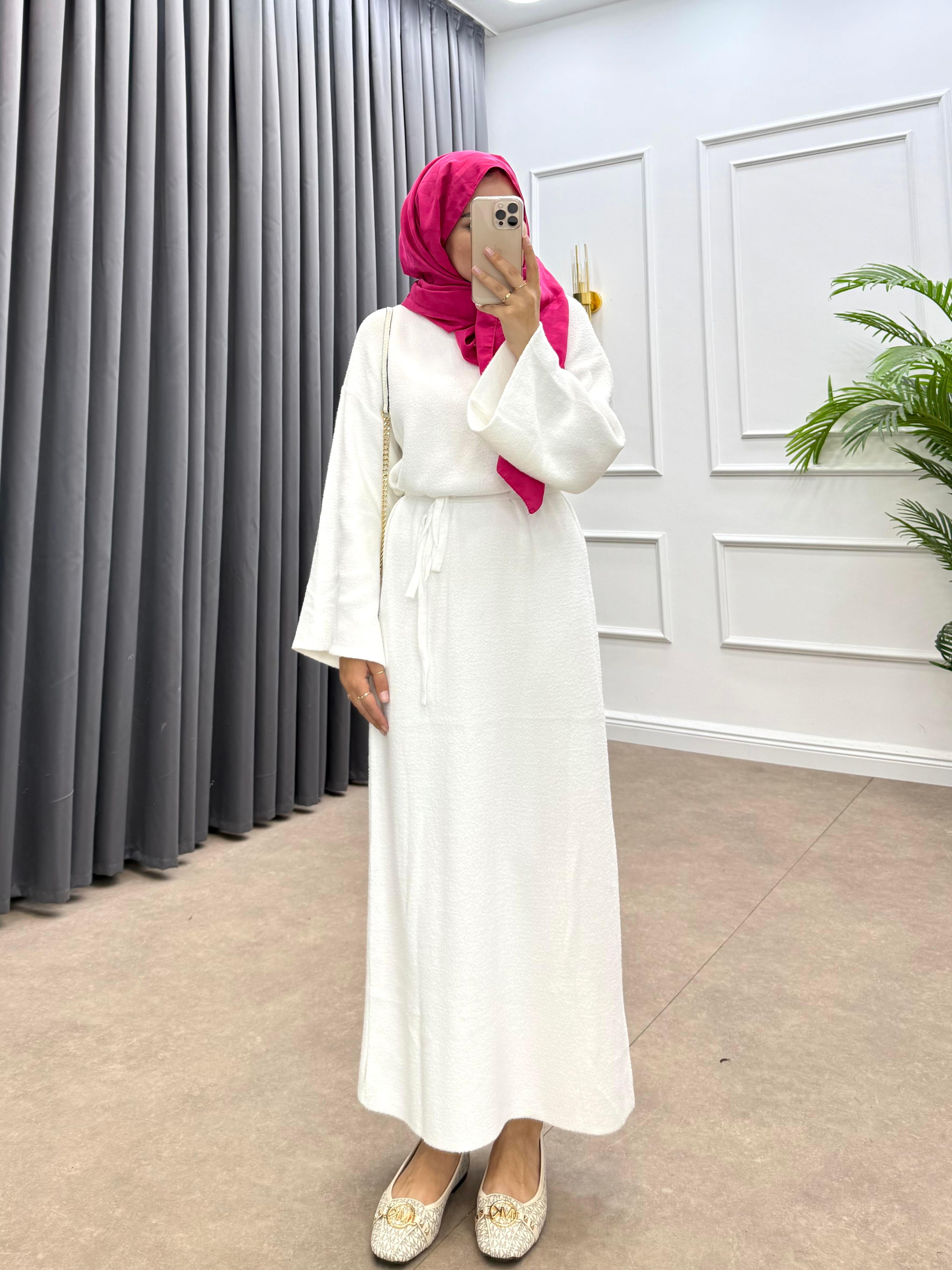 SALAŞ KOL YUMOŞ ELBİSE BEYAZ