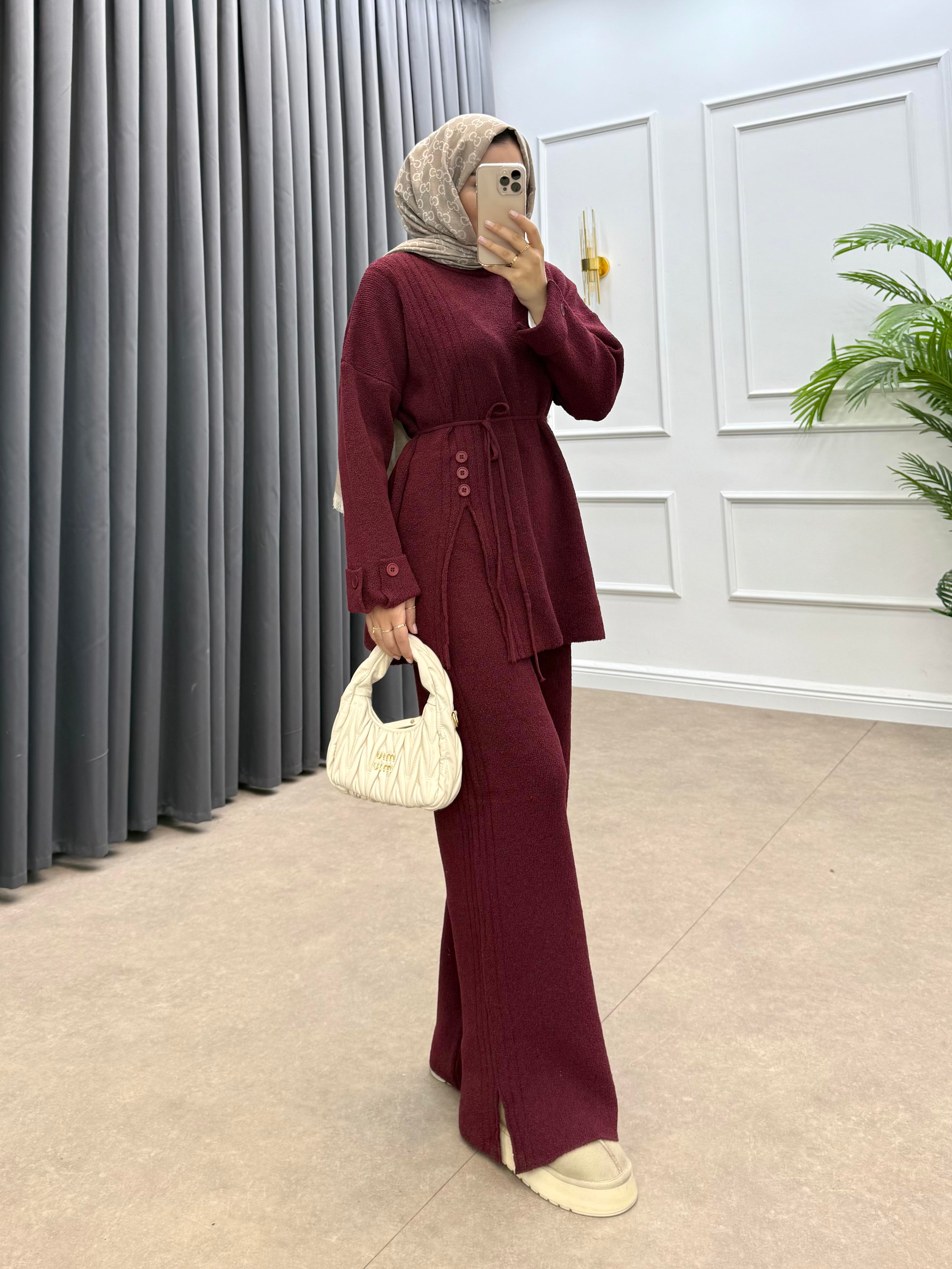 ÜÇ DÜĞME DETAYLI TRİKO TAKIM BORDO