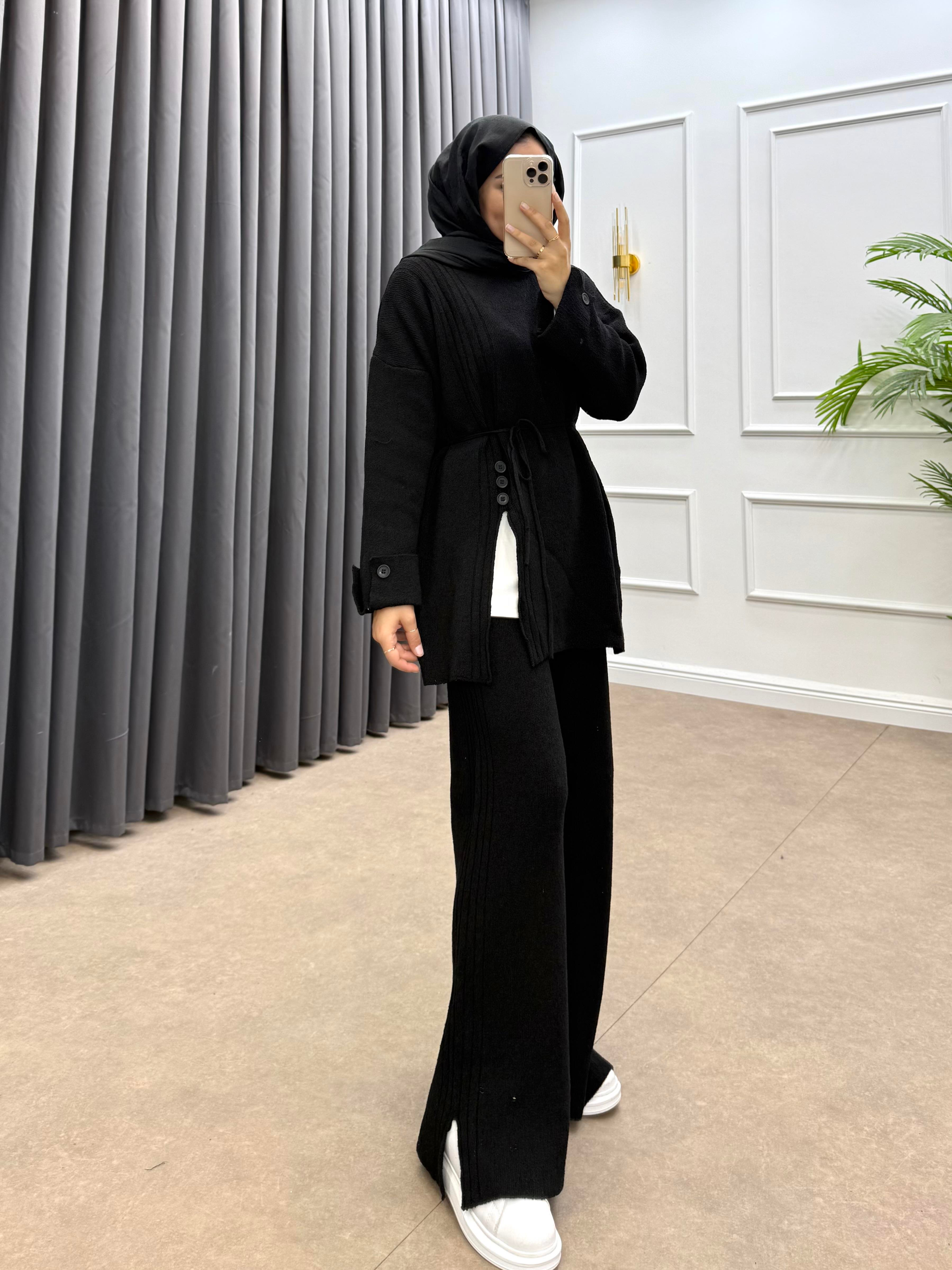 ÜÇ DÜĞME DETAYLI TRİKO TAKIM SİYAH
