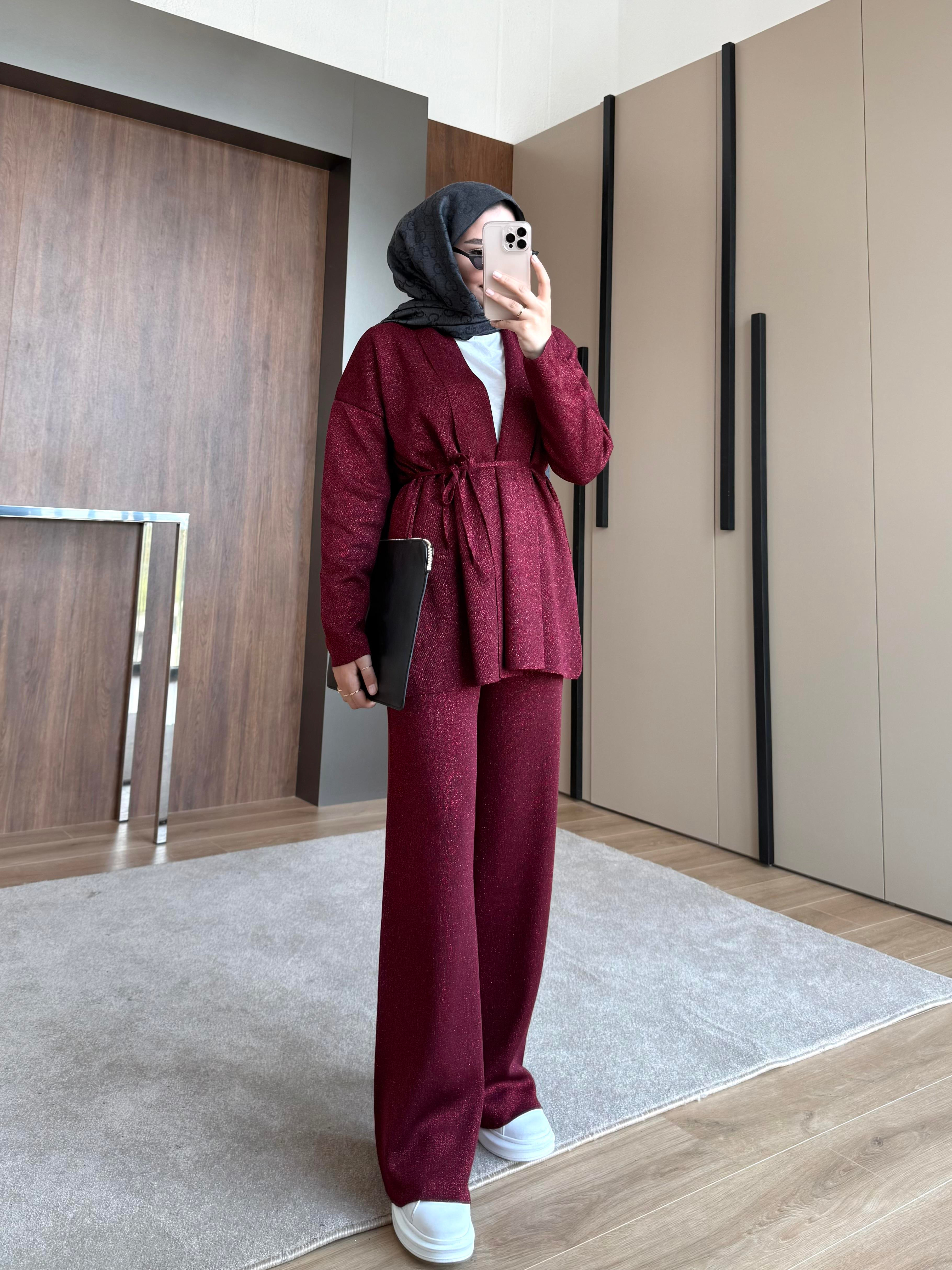 Kumaş Bilgisi: İthal Simli Triko Kumaş - Parlak ve göz alıcı bir görünüme sahip, konforludur bir adet seyyar kuşağı mevcuttur diz izi yapmaz tiftiklenmez.