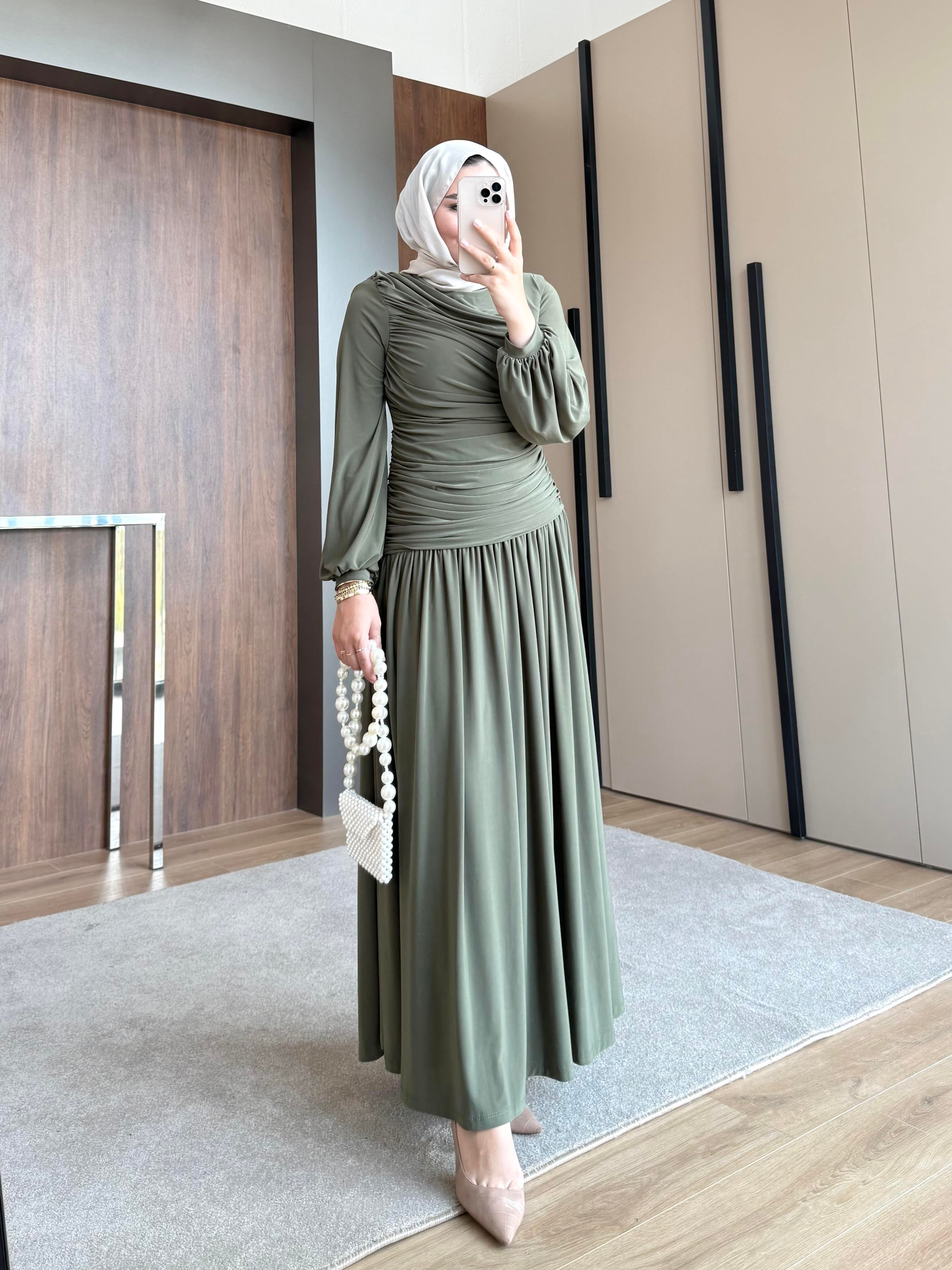 YANDAN BÜZGÜLÜ SANDY ELBİSE HAKİ