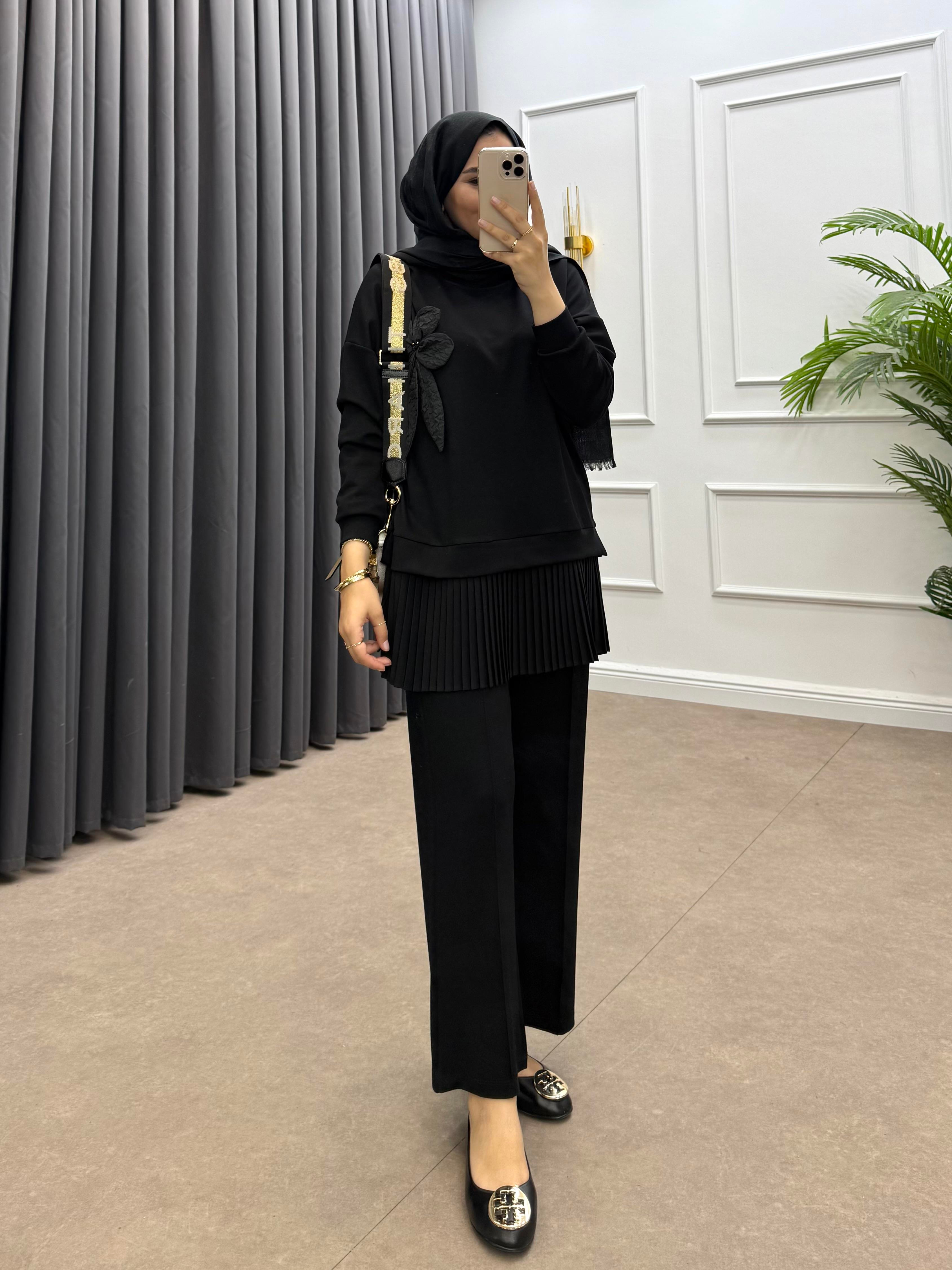 ZAMBAK İÇLİK DETAYLI TAKIM SİYAH
